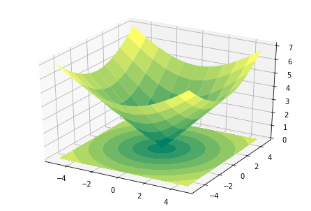 ax.contourf(X,Y,Z, zdir='z', offset=0, cmap=plt.cm.summer) # 등고선 생성